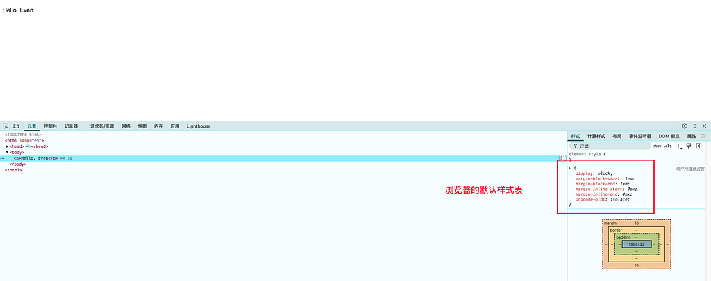 <!DOCTYPE html> <html lang="en"> <head> <meta charset="UTF-8"> <meta name="viewport" content="width=device-width, initial-scale=1.0"> <title>CSS的基本规则和选择器</title> </head> <body> <p>Hello, Even</p> </body> </html>